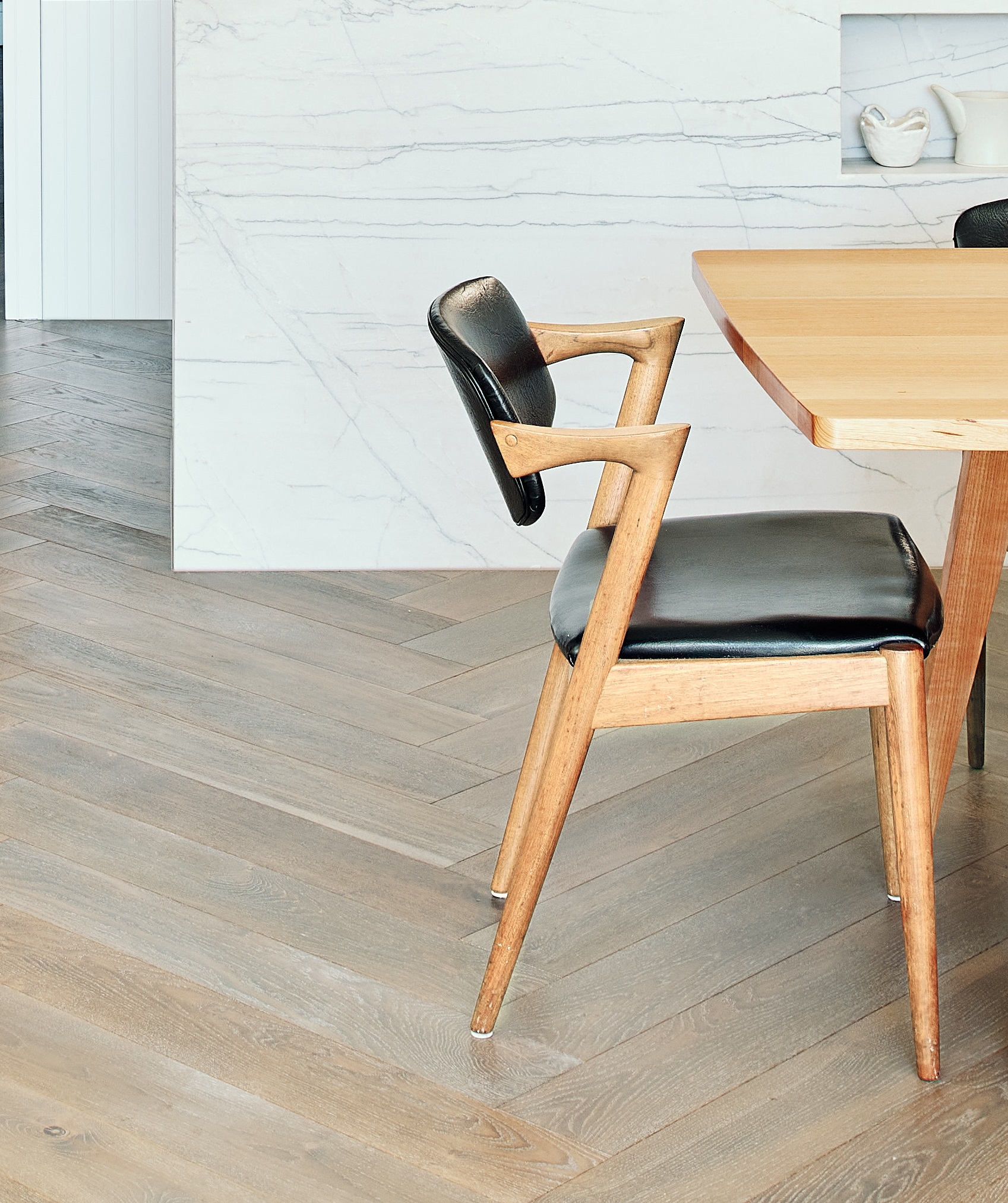 French Grey Herringbone oak flooring was used in this design by Melbourne architects Topology Studio for their Albert Park Lantern House project.