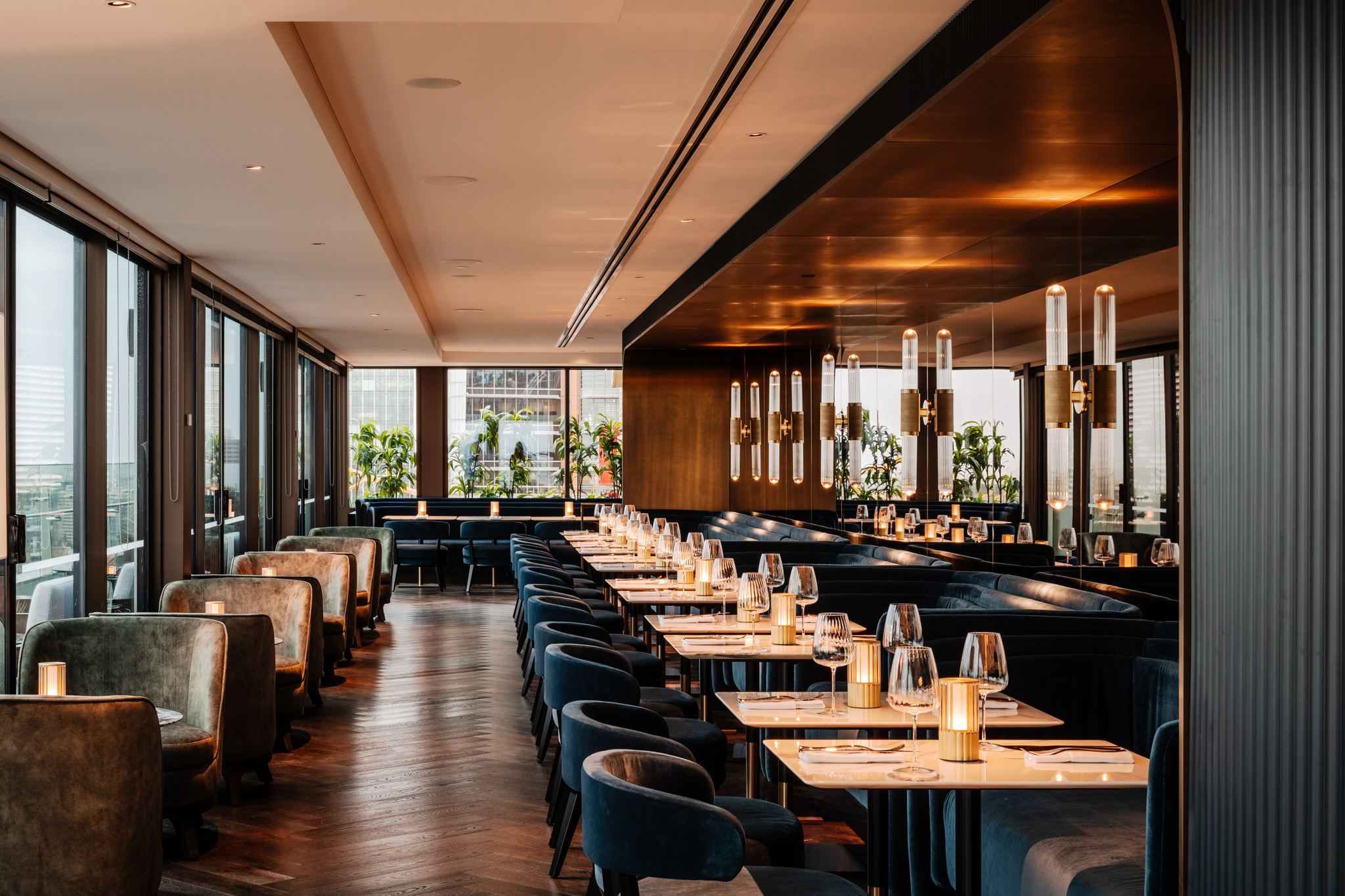 The Dark Oak engineered floors in a herringbone design captures the heritage features and is a striking addition to the hotel’s rooftop Aster Bar and restaurant.
