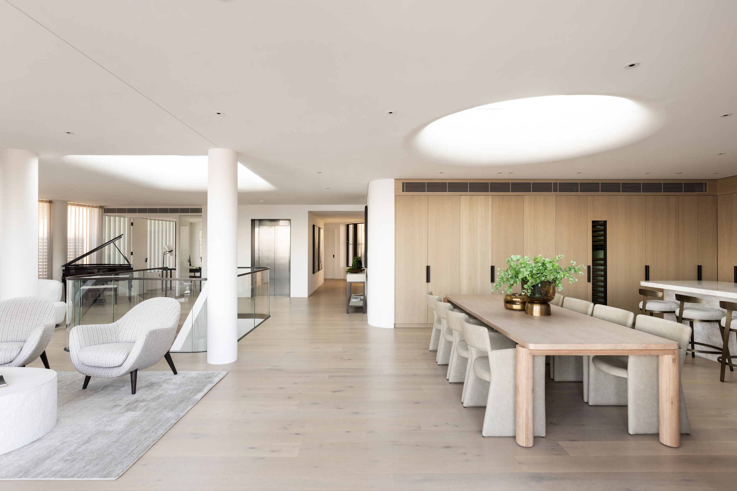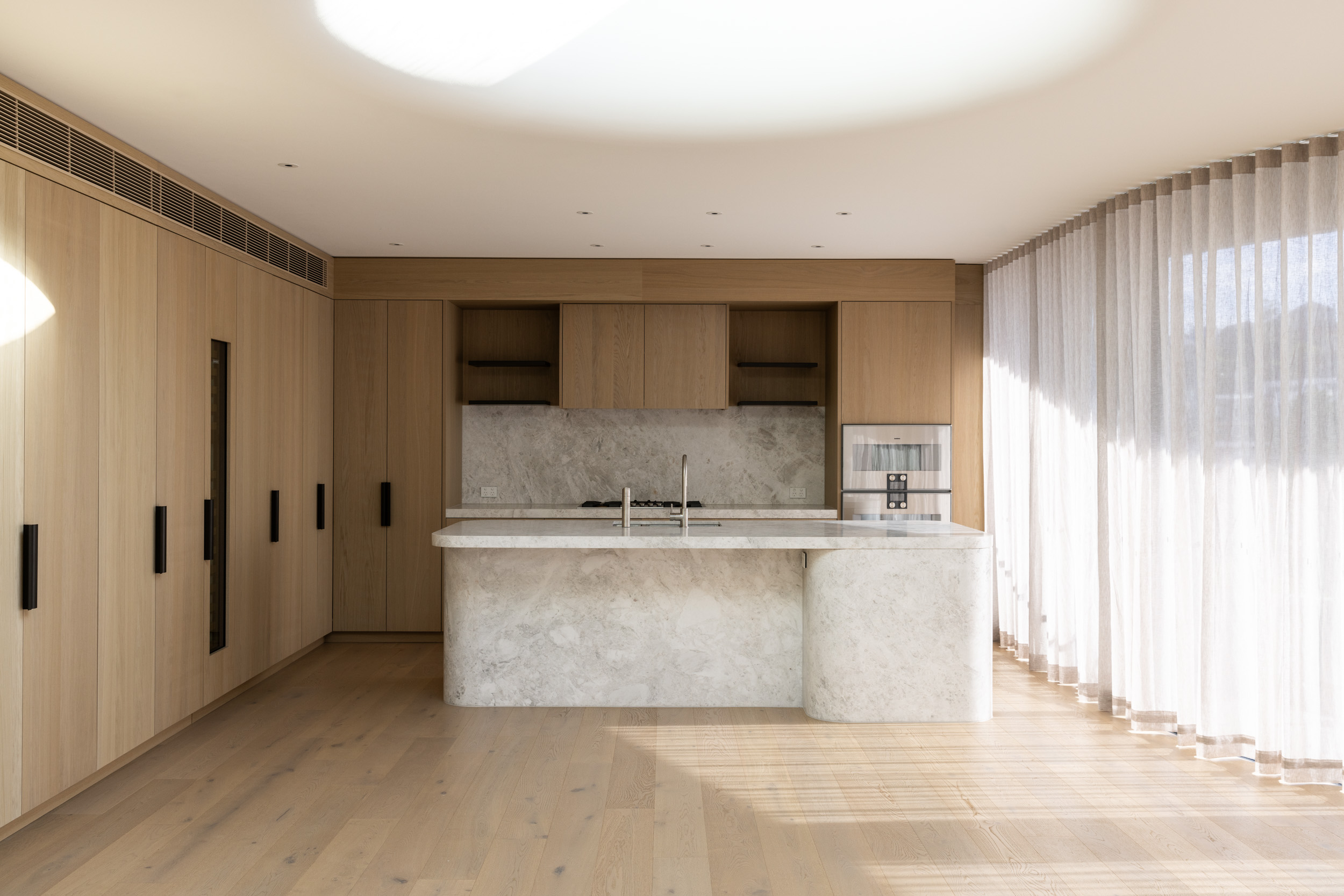 Light Oak timber flooring was used in this oceanside Ondas apartments in Manly. They were designed by Rob Mills Architecture and Interiors to take in as much of the ocean as possible, with a focus on indoor-outdoor living.