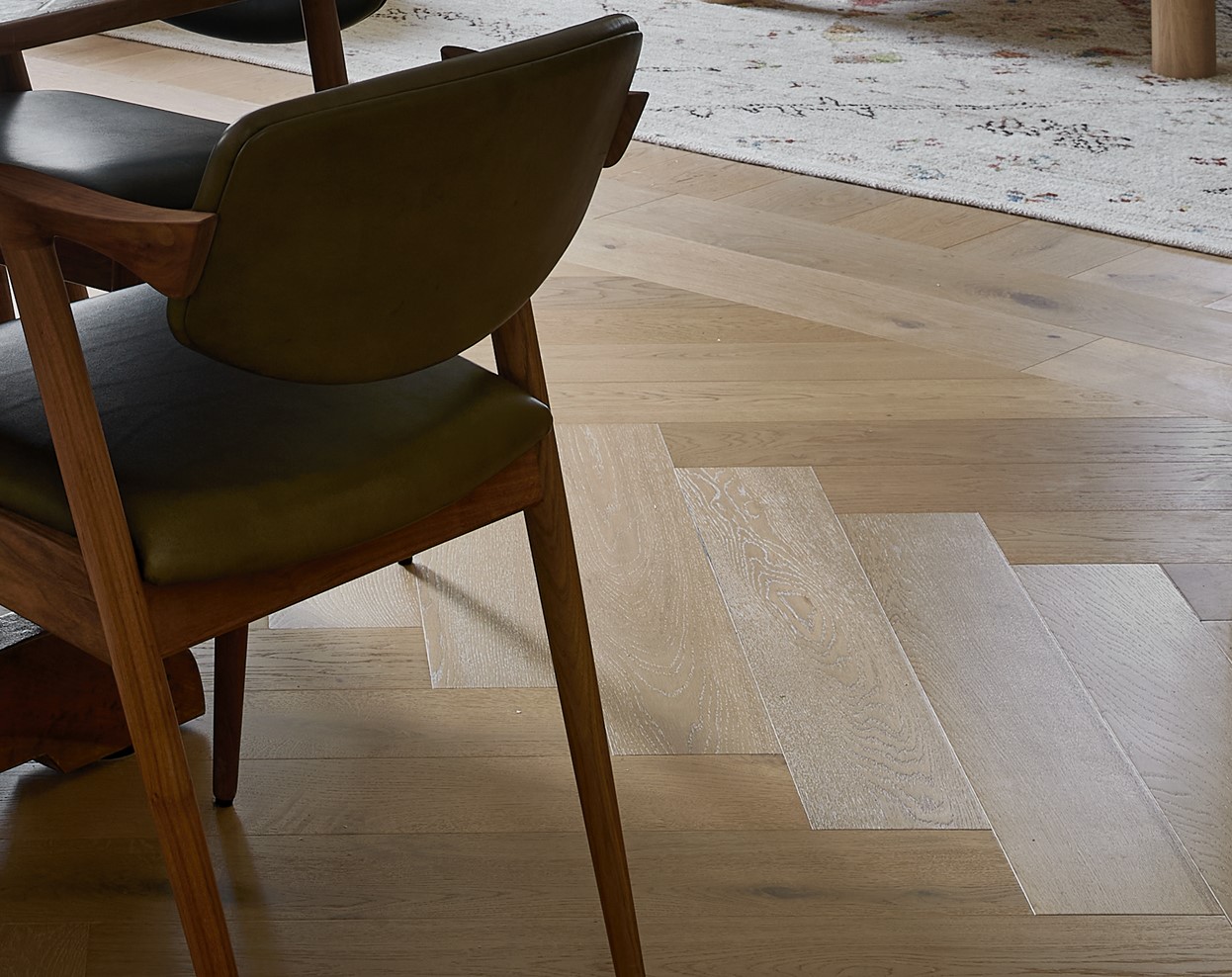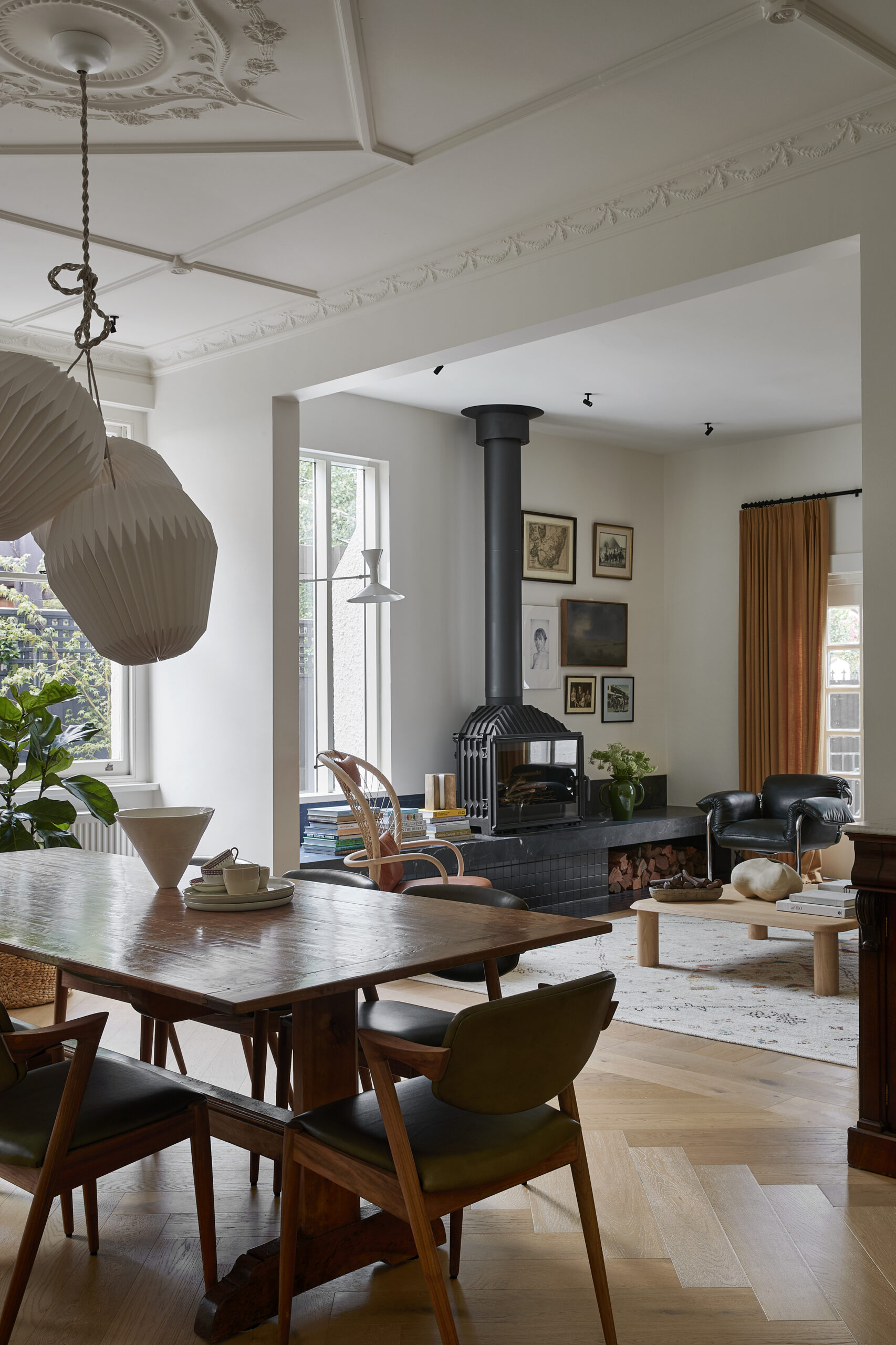 Our Toasted Oak timber flooring brings warmth and character to the interiors of this inner-city eclectic home, using a combination of straight planks and Herringbone design.
