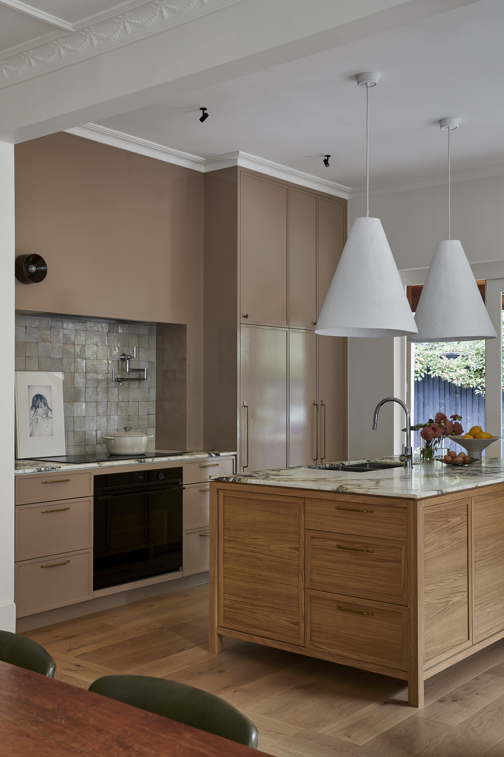 Spanish Mission House was inspired by the client’s vibrant art collection and eclectic furniture pieces when designing the interiors. Lande Architects worked to incorporate colour, texture and careful placement of personal objects when crafting the interior design. A timeless mix of calming green hues, bold blushes, and moody corks pay homage to the home’s previous life.⁠